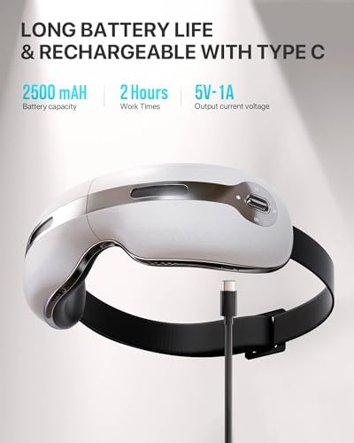 The eye massager is designed with a rechargeable battery, ensuring easy and convenient use. Its adjustable strap and lightweight design make it comfortable to wear, and it is suitable for both men and women. With its sleek and modern design, this eye mask also makes for a thoughtful and practical gift for your loved ones.
