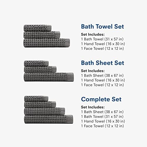 ONSEN Complete Bath Towel Set – Waffle Weave 100% Supima Cotton Towel – Lusciously Soft, Durable, Fast Absorbing Waffle Towel Bath Towel, White